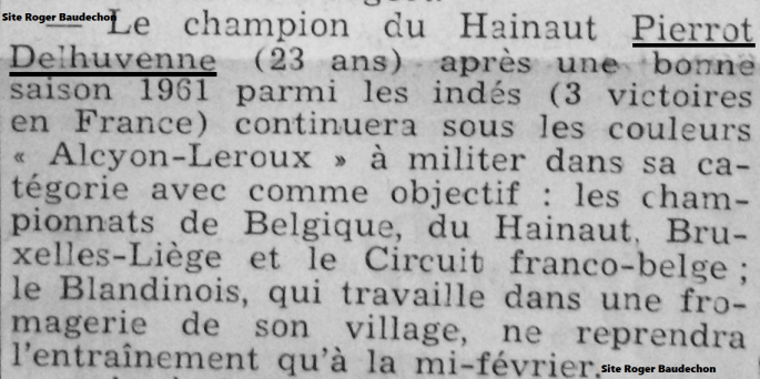 Photo. Un article du journal local "LE POSTILLON". (1961) Nous n'avons pas trouvé de portrait de Pierre DELHUVENNE alias "Pierrot". Il y a bien un ou deux sites dont "VELO MOSELLE" qui évoquent ses prouesses mais nous ne parvenons pas à l'identifier. Nous avons lancé une bouteille à la mer pour tenter de joindre un … Lire la suite « SOUVENEZ-VOUS » : Pierrot DELHUVENNE. #2021