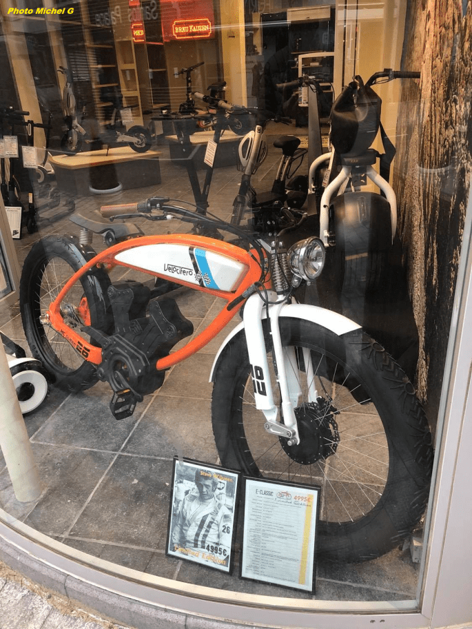 Et bien si, c'est une bicyclette ... électrique. Merci à MichelG pour la présentation de ce modèle Steve MC QUEEN. Dans un magasin de KOKSIJDE AAN ZEE !!!