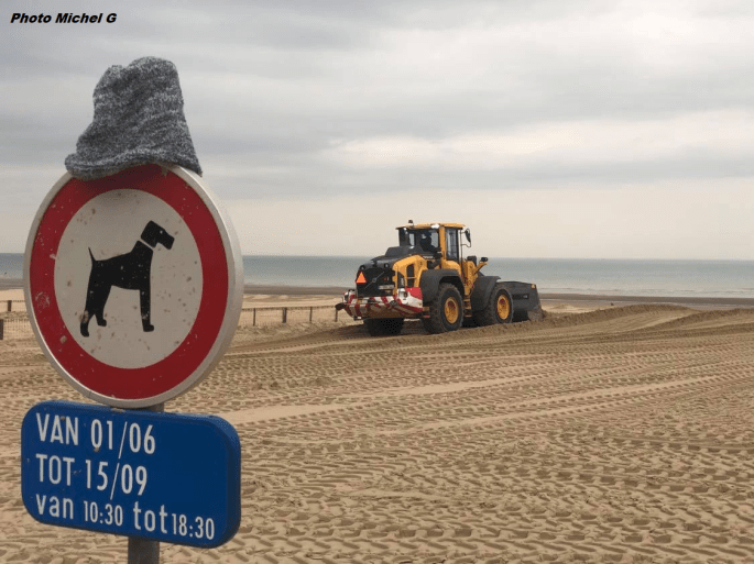 A KOKSIJDE les chiens sont admis en ce moment. Mais avec les engins lourds sur la plage, autant bien les garder en laisse !!! 😄 Merci à MichelG pour l'image.