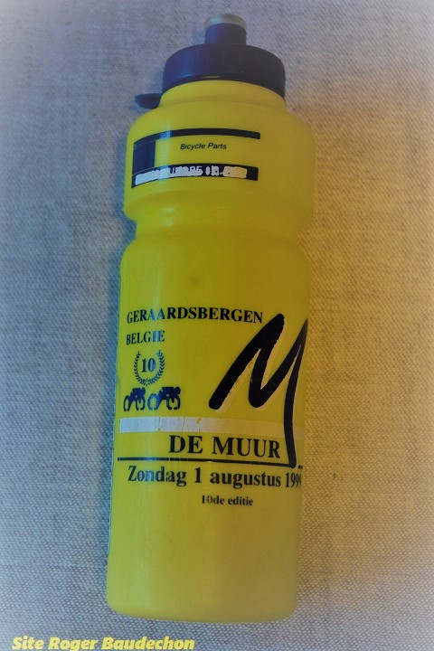 Photo. Le bidon "cadeau" qui était remis au départ. La randonnée du "M" pour "MUUR" était organisée à Grammont/Geraardsbergen dans les années 1990. Le bidon en entête est relatif au 10e anniversaire (01/08/1999). Il est souple mais de grande contenance. Comme nous l'avons bien utilisé, ses couleurs sont un peu passées. Néanmoins, il nous/vous permet … Lire la suite 1999, LE « M » DE « MUUR ». #Grammont/Geraardsbergen #2021