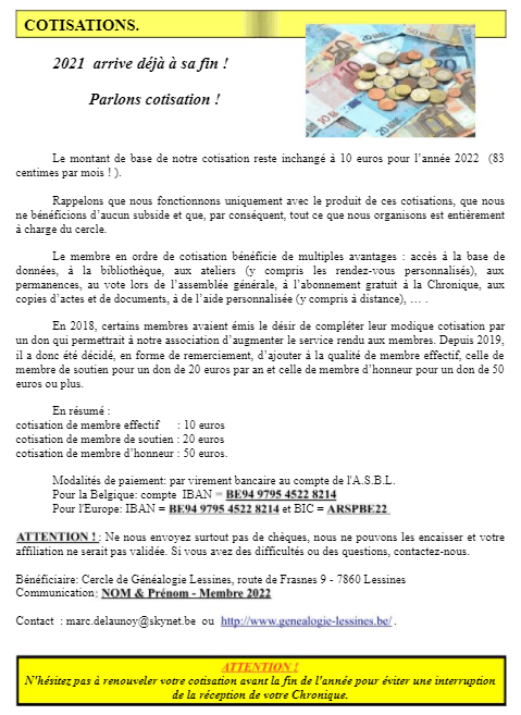 Fiche informative. Vous souhaitez devenir membre du "CERCLE DE GENEALOGIE" ? Voici quelques informations qui vous seront utiles afin de vous abonner. Notez que vous avez sur ce site le compte-rendu de l'EXPO sur les anciens COMMERCES de Lessines !!! Minutie, recherche, diversité, histoire et généalogie. #SujetsVariés