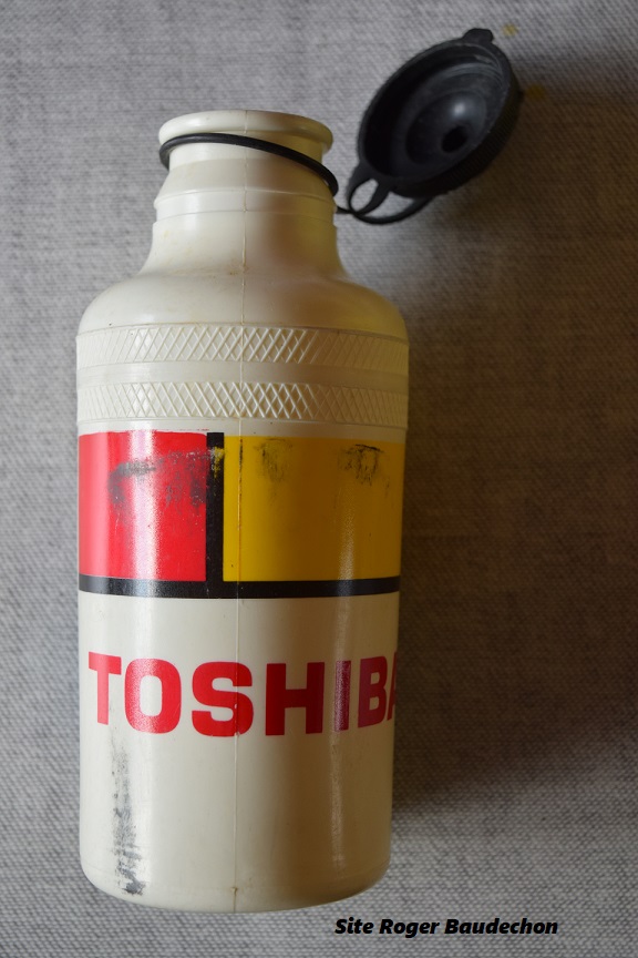Photo. Un bidon du team "TOSHIBA". Un BIDON de l'équipe cycliste "TOSHIBA". Nous ne pourrions plus vous dire où et quand nous l'avons reçu/trouvé. Retenons surtout que ce team a été propriété de Bernard TAPIE jusqu'en 1988. Il avait débuté en 1984 avec "LA VIE CLAIRE" pour devenir "TOSHIBA" en 1987. L'équipe est restée dans … Lire la suite « TOSHIBA ». #Team #Bidon #2021