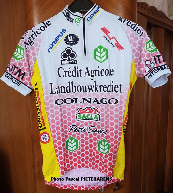 Photo. De 2002. "LANDBOUWKREDIET-COLNAGO" 2002. Une équipe qui fait partie de la longue histoire de cette banque qui a sponsorisé Gérard BUELENS de 2001-2013). Lui-même ayant aussi été chez "SEFB" (av) et "CRELAN" (ap). Le team qui a porté ce maillot était constitué de : MEIRHAEGHE, MATTOZZA, METLUSCHENKO, SORENSEN, STREEL, TIMOCHINE, VAN HAECKE, POPVYCH, LOUDER, … Lire la suite UNE EQUIPE. UN MAILLOT. #2021