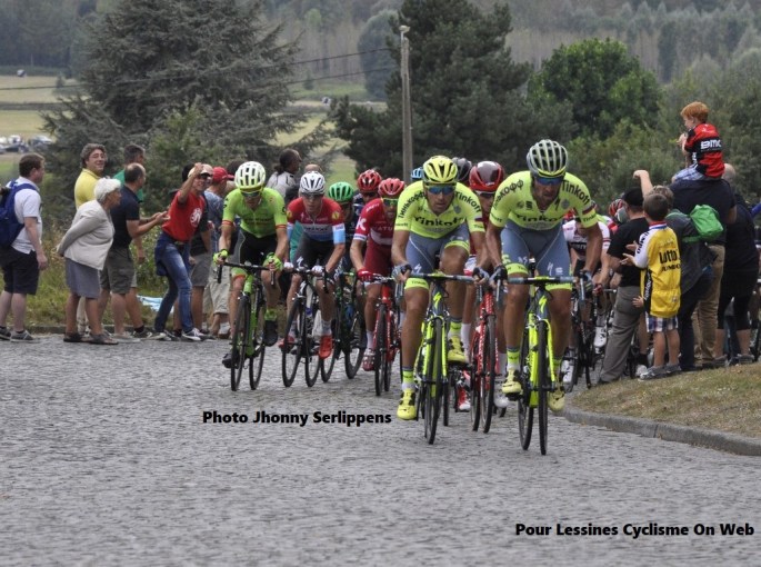 Photo. Les "TINKOFF" donne le train dans le Sanatorium. 2016. "ENECOTOUR". Merci à JhonnyS pour les clichés. Modèle 2014. Merci à MichelG pour le don !!! "TINKOFF", une équipe qui a beaucoup fait parler d'elle. Arrivée dans le cyclisme en 1999, elle le quittera en 2016.