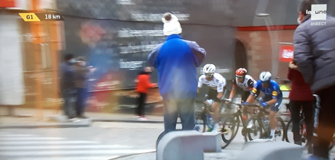 Nous n'en avions pas parlé car il l'a fait lui-même sur sa page FB. Mais même "camouflé" comme il l'était, il ne passait pas inaperçu. Surtout en bord de route, paré pour prendre ALAPHILIPPE sur le dos, pour l'aider à grimper le Muur. Il a échappé aux 350 € d'amende. C'eut été dommage. Une somme … Lire la suite « IL » ETAIT PRESENT SUR – OHN. #2021