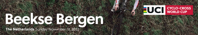 Affiche. Ce dimanche, c'est à quelques encablures de la frontière belge que la cinquième manche de la "COUPE DU MONDE UCI" de cyclo-cross aura lieu. En effet, BEEKSE BERGEN se situe à côté de TILBURG. Les JUN et ELITES, dames et messieurs sont programmés. 10:00 – 10:50 > Dames juniors & U17 12:00 – 12:50 … Lire la suite « BEEKSE BERGEN ». #P-B #Cross #UCI #13/11 #2022