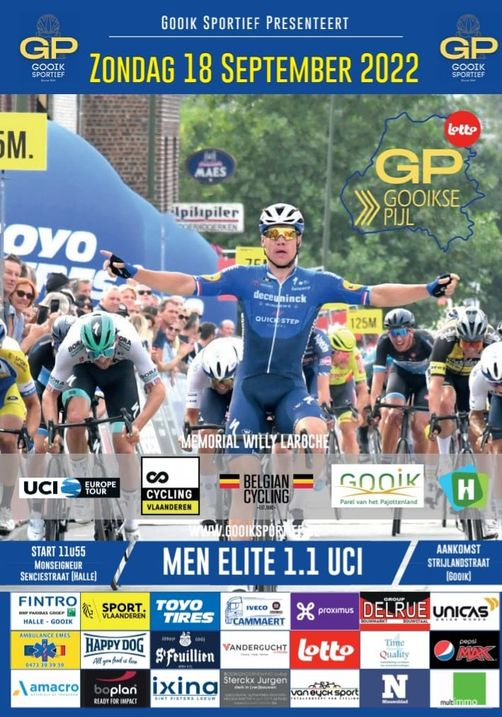 Affiche. Dimanche, la "GOOIKSE PIJL" partira de HALLE. Elle consacrera un costaud à l'issue de 199 km vers la commune de GOOIK. Nous sommes dans le "PAJOTTENLAND". Un peu le "PAYS DES COLLINES" et ses petites côtes. C'est la dernière ligne droite pour les épreuves de cette saison. Départ de HALLE (Brx) à 11h55. KM … Lire la suite « GOOIKSE PIJL ». #ToutOuPresqueSurL’Epreuve #18/09 #2022