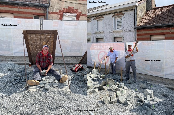 Photo. AndréD ("Dédé") et FabriceR ("Fab") en mode "CAYOTEU". Le "CAYOTEU" (casseur de cailloux-tailleur de pavé, ... , d'une époque révolue-tout est mécanisé) fait partie du Patrimoine lessinois. Un ouvrier mal rétribué pour un dur labeur. Vous avez en entête deux CYCLOS qui, pour l'occasion, n'ont pas fait leur sortie dominicale. Ils ont préféré endosser … Lire la suite LES CYCLOS … DES BESOGNEUX. #Cayoteu #2022