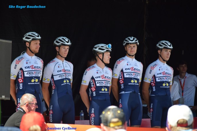 Photo. A la présentation au podium. Nous avions signalé que deux ou trois équipes seraient dans le viseur lors de ce "CIRCUIT FRANCO-BELGE". C'est le cas de "GEOFCO-DOLTCINI-MATERIEL VELO.COM". Une continentale belge qui est invitée avec régularité sur de grandes épreuves nationales et internationales. Avec des résultats à la clef. N'oublions pas qu'elle n'a pas … Lire la suite « GEOFCO-DOLTCINI-MATERIEL VELO.COM ». #Franco-Belge #10/08 #2022