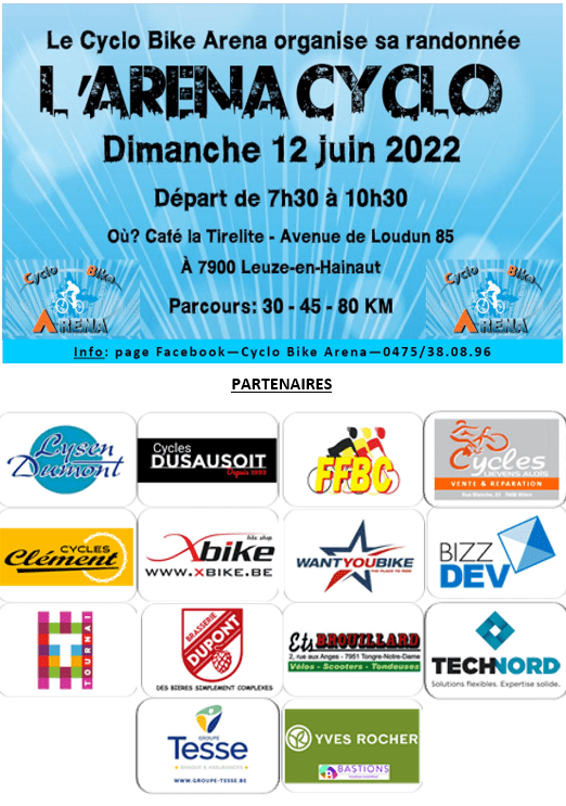 Tout sur l'affiche pour participer à la "ARENA CYCLO" >>> au café "LA TIRELITE". Une randonnée cataloguée : "LES PICARDES". Ce samedi après-midi - 11/06, c'est la "SAINT AYBERT" à BLEHARIES. (résumé d'une participation antérieure sur site)