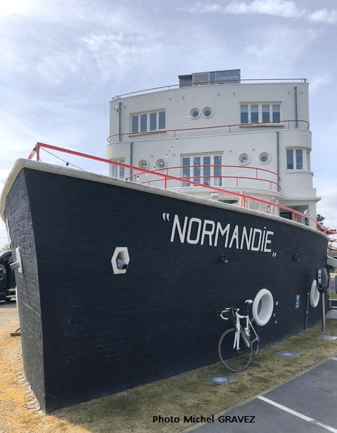 Le beau temps est là. MichelG nous transmet des images du "NORMANDIE" à KOKSIJDE (côte belge). Une reproduction (restaurant) qui est considérée comme un véritable monument. Le paquebot original était devenu le "USS LAFAYETTE" en 1941. Il fut démonté en 1946. Demain, nous présenterons "LA PENICHE".