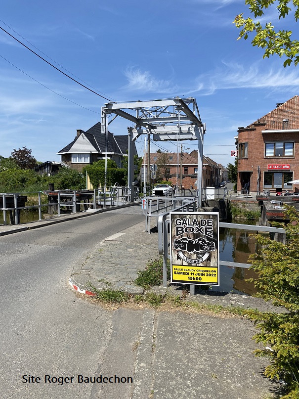 Le pont de la Dendre acrenois. Mais surtout une affiche du futur "GALA DE BOXE" de notre cousin Alain BAUDECHON (organisateur). Le tout dans le hall sportif "CLAUDY CRIQUIELION" lessinois. Le 11 JUIN 2022. Plus de précisions dès mercredi soir. Une soirée dont il espère une reprise "comme avant". Nous serons en mode assistance.