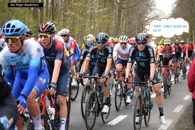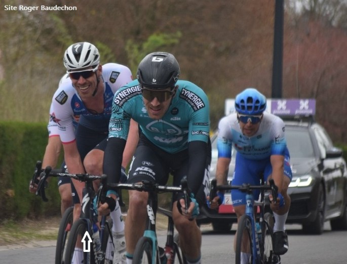 Photo. Une "française" du team "FDJ NOUVELLE AQUITAINE-FUTUROSCOPE" avait fait le trou !!! Elle prenait du plaisir car elle a fait signe à des comparses un peu plus bas et à notre hauteur, elle nous a gratifié d'un sourire. 👍 Dans la côte du "HOTOND" (les dames montaient, les messieurs descendaient) il y avait des … Lire la suite QUELQUES IMAGES DE « DWARS DOOR VLAANDEREN ». #30/03 #Dames #2022