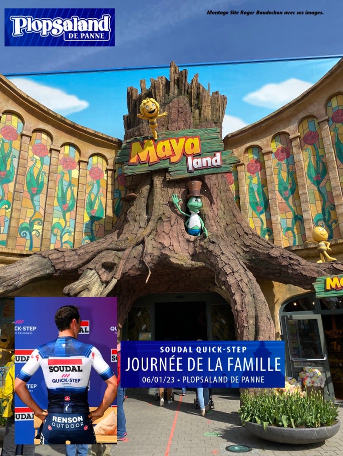 Photo. De "Lessines Cyclisme". Avec notre image, les logos du parc + le maillot et nouveaux sponsors du team. MichelG, JhonnyS et LudoB sont au taquet !!! Ils ont mis en évidence "LA JOURNEE DES FAMILLES" à "PLOPSALAND DE PANNE" (Parc d'attractions à la côte belge). En effet, le 06/01/2023, l'équipe "SOUDAL-QUICK STEP" fera (en … Lire la suite « JOURNEE DE LA FAMILLE ». #TEAM-SOUDAL-QUICK STEP #Plopsaland-Adinkerke-DePanne #06/01/2023 #2022
