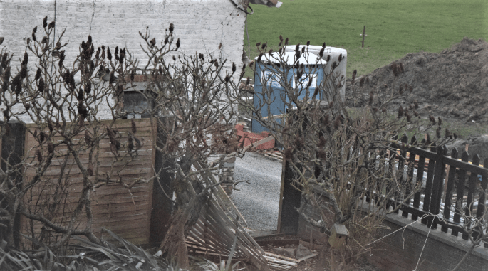 Que nous réserve la nuit ? Et un grillage soutenu avec des cordes. Résistera-t-il ? Sans compter les ardoises qui se soulèvent sur le toit ... . #ToutVaBien ...