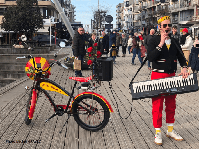 Avec une image qui nous vient de MichelG aan zee. Bonne fête !!! Un spectacle de musique/bicyclette à KOKSIJDE. (samedi)