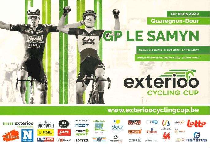 Affiche. Merci à RonaldC pour le transmis de l'affiche. "LE SAMYN" c'est le 01 MARS 2022. Autant pour les Dames que pour les Messieurs. Avec un parcours qui passera dans "LES COLLINES". Informations sur les deux sites suivants : EXTERIOO remplace BINGOAL pour la CUP. 11 épreuves >> https://www.exterioo.be/fr/cyclingcupLE SAMYN organisation >> https://lesamyn.be/ Et de … Lire la suite LE « SAMYN » APPROCHE. #2022