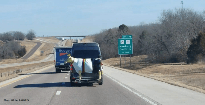 Une toute dernière image de la semaine américaine. La vache. Nous en avons d'identiques dans la région. Lors de vos circuits, passez à Ollignies/Ghislenghien. La nôtre est tricolore. Contrairement à celle que vous voyez qui est étoilée. Merci à Michel BAJOREK et MichelG pour les clichés USA.