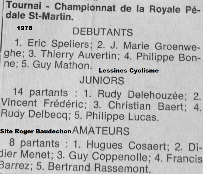 CHAMPIONNAT DE CLUB A « LA ROYALE PÉDALE SAINT-MARTIN » TOURNAI. #1978 #2023