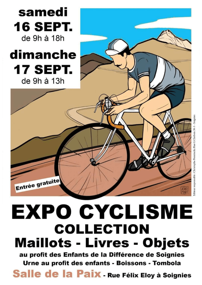 EXPO-CYCLISME-COLLECTION-MAILLOTS-LIVRES-OBJETS. #Soignies #16-17/09 #2023