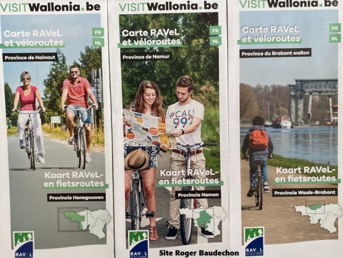 Photo. Les cartes au 1/100.000 - de qualité - de trois Provinces : Hainaut, Brabant Wallon et Namur. Il y en a d'autres !!! Pour parcourir la WALLONIE par des chemins à l'écart de la circulation, "VISITWALLONIA.BE" propose des cartes routières gratuites très intéressantes (RAVEL). Elles sont commentées dans deux langues : français et néerlandais. … Lire la suite LES CARTES RAVEL et VÉLOROUTES. #VisitWallonia.be #2023