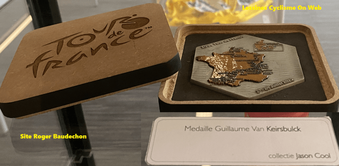Photo. De "L'EXPO" à BREDENE. Une découverte. Chaque coureur -présentement Guillaume VAN KEIRSBULCK (Roulers/31ans) - reçoit une médaille en souvenir de sa participation au "TOUR DE FRANCE" (ce qui nous a été dit). La collection de Jason COOL exposée à BREDENE possède des pièces de qualité. Rares. Cette médaille est d'environ 15 x 15 cm. … Lire la suite LA MÉDAILLE DU SOUVENIR – « TOUR DE FRANCE ». #2022 #2023