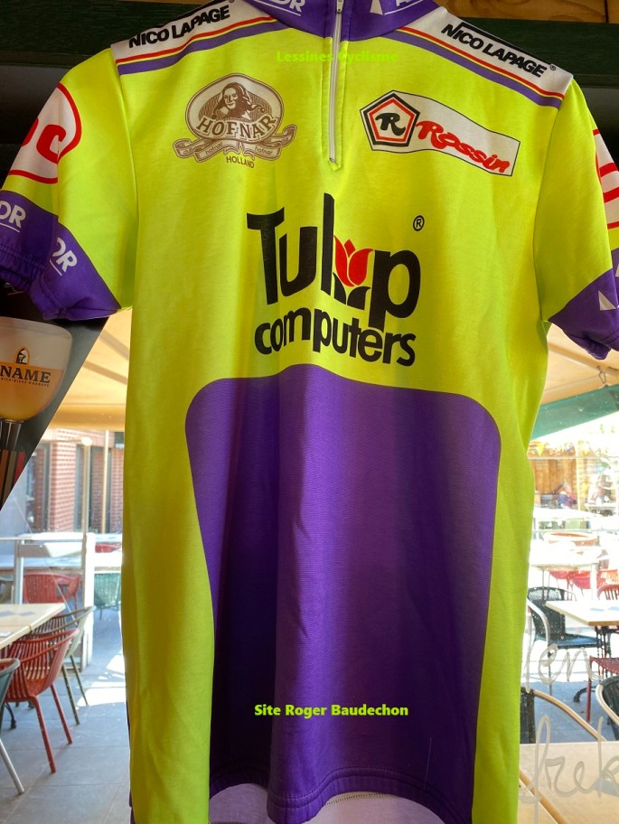 Photo. Dans le restaurant cycliste "FIETSKOTJE" (Bredene), vous entrez dans un musée. Le maillot de l'équipe "TULIP - IOC - HOFNAR" trône en bonne place dans la salle principale. Nous avions un doute. Les couleurs "ADR" et la marque "TULIP". Après quelques recherches, c'était bien en 1990. En même temps, il y avait une autre … Lire la suite LE MAILLOT « TULIP – IOC – HOFNAR ». #1990 #2023