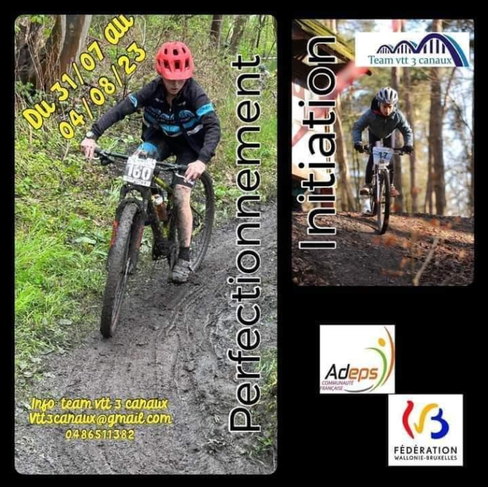 Affiche organisateur. Merci à DavidL pour l'envoi. Le "TEAM VTT TROIS CANAUX" (Blaton) organise un stage VTT - perfectionnement ou initiation - du 31/07 au 04/08 pour les jeunes. Toutes informations utiles sur la page "FB" du club. (FCWB-ADEPS) >>> Notez qu'à partir de septembre, du VTT (jeunes) est organisé chaque mercredi après-midi à partir … Lire la suite STAGE D’ÉTÉ. #Vtt #Congés #2023