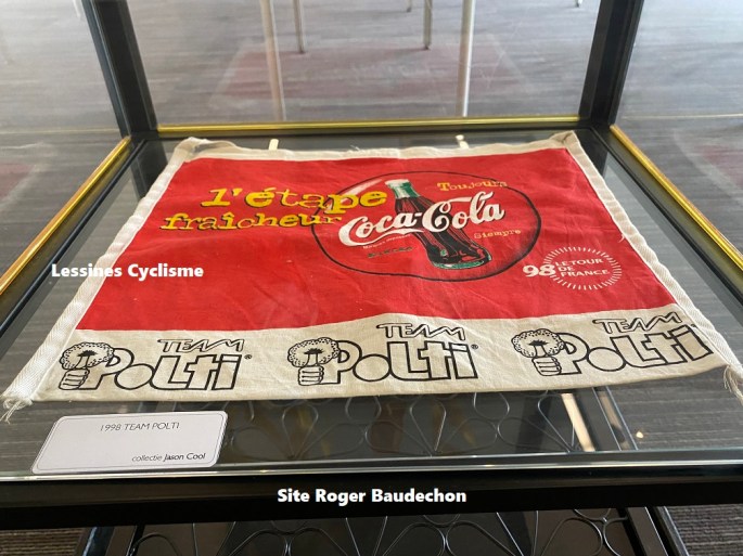 Photo. La musette. Collection Jason COOL. En exposition à BREDENE jusqu'en septembre. Lors du "TOUR DE FRANCE" 1998, l'organisateur fournissait des musettes aux couleurs du sponsor "COCA COLA". Une seconde d'entre elles sera présentée sous peu. Les bidons étaient identiques. Le team "POLTI" était composé de : ATIENZA, BRASI, CASSANI, CELESTINO, COLLEONI, CREPALDI, GUALDI, GUERINI, … Lire la suite LA MUSETTE « POLTI » – « TDF 1998 ». #2023