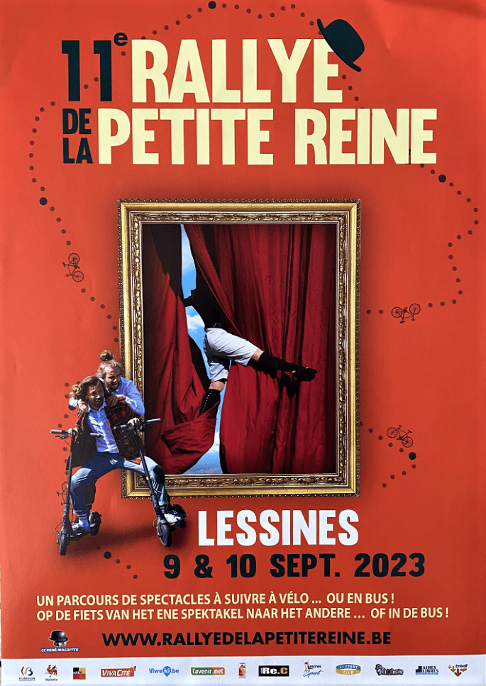 Affiche. Mardi dernier, une réunion s'est tenue au "CENTRE CULTUREL RENÉ MAGRITTE" (Lessines). Les participants (organisateurs et aidants) ont ainsi pu avoir un aperçu des avancées en matière de "RALLYE DE LA PETITE REINE" (Septembre). Tout va bien !!! L'affaire est sur les rails. D'ailleurs, la nouvelle affiche vient d'être imprimée et distribuée. Si vous … Lire la suite DERNIERS PRÉPARATIFS POUR « LE RALLYE ». #PetiteReine #09-10/09 #2023