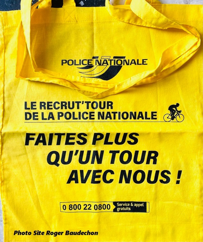 Photo. Merci à MichelG pour le don. Nous avons souvent tendance à évoquer la caravane publicitaire du "TOUR DE FRANCE" sous sa forme "GADGETS" : biscuits, eau, porte-clefs, casquettes, ... . Mais il y a aussi des sujets autrement plus sérieux. Ainsi, la POLICE NATIONALE française a lancé un "RECRUT' TOUR" pour mieux faire connaître … Lire la suite ENGAGEZ-VOUS !!! #SacPoliceNationale #2023