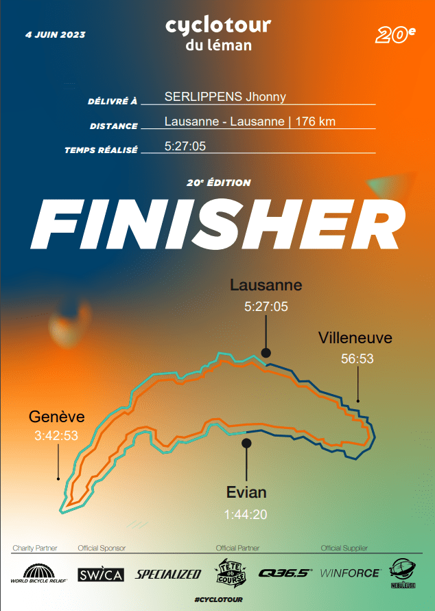 JHONNY’S EST FINISHER !!! #UneLégende #CyclotourDuLéman #04/06 #2023