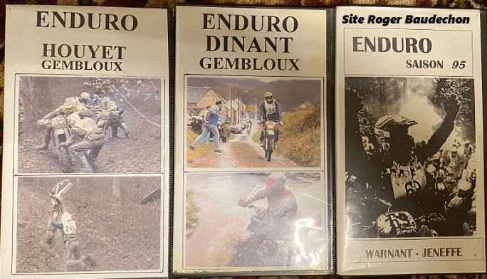 Comme nous allons proposer énormément de cyclisme en deux jours, voici une image de cassettes VHS d'épreuves belges d'enduros moto. Les années folles !! + les françaises : "LE TRÉFFLE", "LA GRAPPE", "LES HUSKY DAYS" ... . MAGAIN (Bel) - FRETIGNÉ (Fr) ...