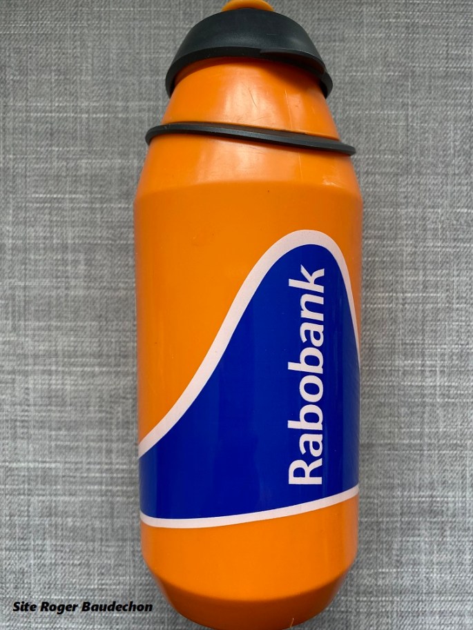 Photo. Merci à HaroldD pour le don. Il pourrait s'agir d'un bidon de l'équipe "RABOBANK" PRO de 2007. Mais nous nous souvenons très bien avoir vu cet accessoire entre les mains de coureurs ESPOIRS du team DEVELOP. Par ailleurs, il n'est pas daté comme de coutume. Des collectionneurs le donne également en 2005-2006 et 2008. … Lire la suite C’EST DU « RABOBANK ». #Bidon #2007 #2023