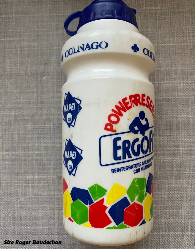 Photo. Merci à HaroldD pour le don. Le bidon appartenait à Tom STEELS. Le "GIRO" étant dans l'actualité, présentons l'équipe italienne qui avait cet accessoire. "MAPEI-GB" 1997 a marqué l'histoire du cyclisme : ABE, BALLERINI, BOMANS, BRAMATI, BUGNO, CAMENZIND, DI GRANDE, FARESIN, FOIS, JASKULA, LANFRANCHI, LEYSEN, MATTAN, MISSAGLIA, MUSEEUW, NARDELLO, PEETERS, PIANEGONDA, SPRUCH, STEELS, SVORADA, … Lire la suite « MAPEI-GB ». #Bidon #1997 #2023