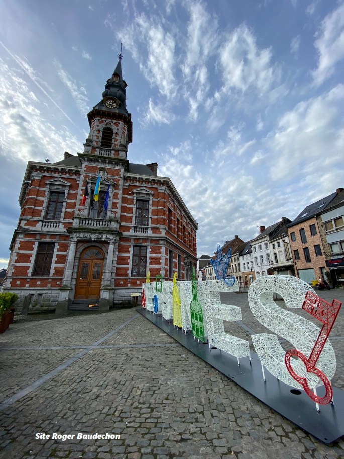 Ce montage réalisé en matière plastique se trouve en face de l'HÔTEL DE VILLE (ancien Centre Administratif-Pompiers-Police ... actuelle Bibliothèque - Grand Place). Il est dans le livret officiel lessinois. Celui-ci n'est pas diffusé hors entité. Ainsi, d'autres lecteurs peuvent aussi en profiter !!! #ANosVélos!!! Hier boucle de +/- 30 km. Temps parfait. 18°.