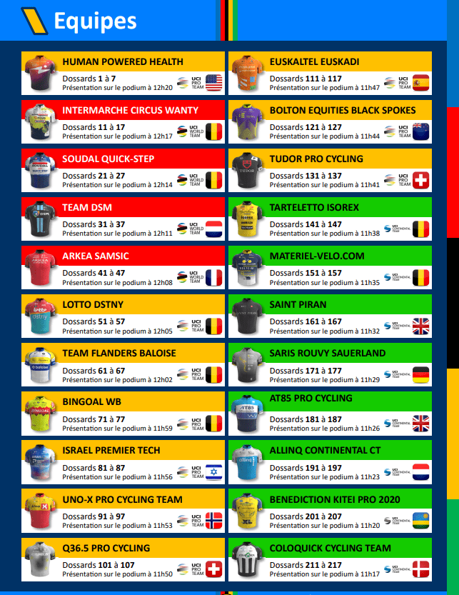 Affiche. Le relais mixte vient de voir la victoire des Pays-Bas devant la Grande-Bretagne et la Belgique. Le weekend sera palpitant. En effet, il y a plusieurs prétendants dans chaque catégorie. Le maillot sera probablement plus compliqué à conquérir que prévu. Les hollandais sont à la maison + VAN DER POEL. Ce qui leur donne … Lire la suite « CHAMPIONNATS DU MONDE » – « CYCLOCROSS » – HOOGERHEIDE. #Programme #04-05/02 #2023