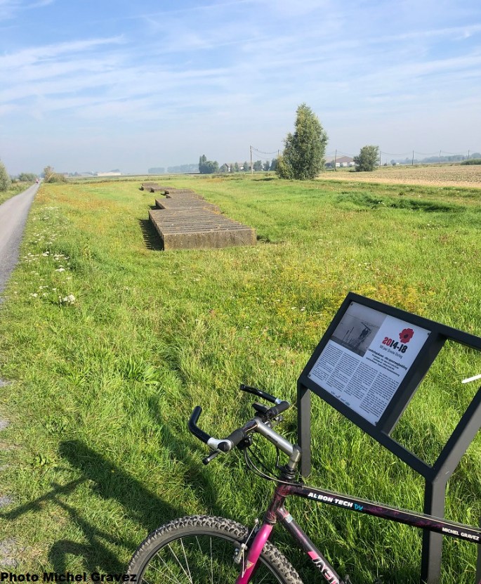 Dans le WESTHOEK, les vestiges de la Grande Guerre sont nombreux. Des circuits cyclistes vous permettent de les fréquenter. Un territoire où le devoir de mémoire est conservé. Présentement, une œuvre commémorative. #ANosVélos Merci à MichelG pour les clichés. De Lucas COEMAN (2004) qui est située à PERVIJZE (entre Nieuport et Dixmude). Le long d'une … Lire la suite L’IMAGE DU JOUR. #InMemory #2023