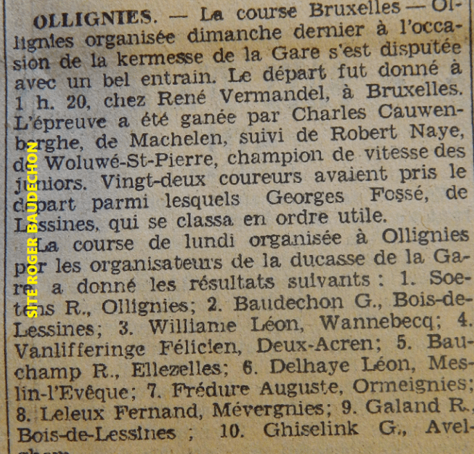 📷De "LCOW" extraite d'un journal du "COURRIER DE L'ESCAUT" de 1935. En 2013, 2014 et 2015. C'est en compagnie de notre acolyte Libert PIETERARENS que nous avions joué aux "rats de bibliothèque". De fait, nous avions débuté par celle de LESSINES (livres sur le cyclisme). Ensuite, au tour des archives de l'HÔPITAL NOTRE-DAME A LA … Lire la suite EN 1935, GASTON BAUDECHON AVAIT LA NIAQUE. ▶2024
