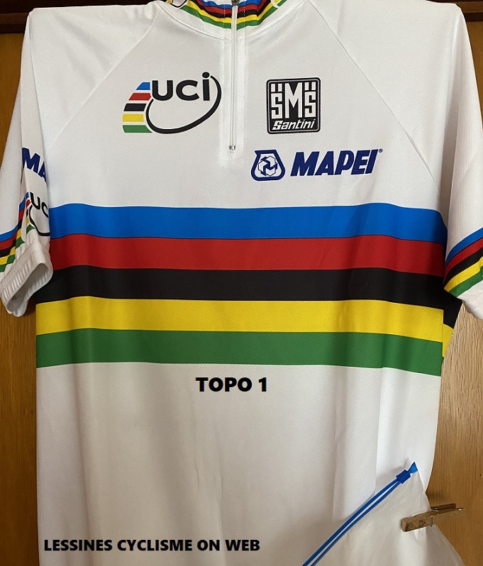 📱Toujours le même maillot décrit précédemment. Voici les résultats des derniers jours des CHAMPIONNATS DU MONDE sur ROUTE et PARACYCLISME de ZURICH. ROUTE U23 : 1 BEHRENS 2 SVRCEK 3 SEGAERT ... 4 CHRISTEN J 7 WIDAR 8 DEL GROSSO T 14 WALLENBORN 15 VERSTRYNGE 17 LECERF 20 MORGADO 26 COSTIOU 29 ORINS 31 TEUTENBERG … Lire la suite TOPO 2 – CM – RESULTATS 27-29/09 – ZURICH. 2024