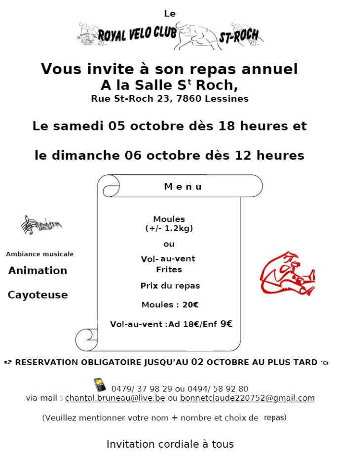 RAPPEL : SOUPER/DÎNER DU « ROYAL VELO CLUB SAINT-ROCH » – LESSINES – 05-06/10. ▶2024