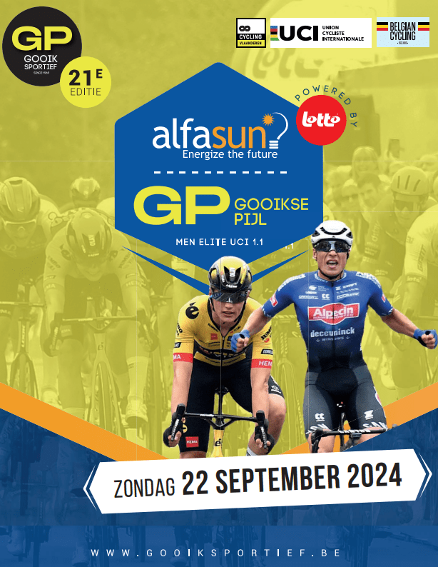Affiche organisateur et infos transmises par Pascal PIETERARENS qui sera DS du team "PHILIPPE WAGNER-BAZIN" CONTI. Merci. La "GOOIKSE PIJL" déménage de HALLE vers ROOSDAAL. Le "WIELERCLUB GOOIK SPORTIEF" permet de rester dans un périmètre géographiquement plus accessible. Départ et arrivée sont proches. Moins de 25 km de LESSINES. Il est même possible de voir … Lire la suite « ALFASUN GOOIKSE PIJL P/B LOTTO ». 1.1. ROOSDAAL-GOOIK. 22/09. INFOS. ▶2024