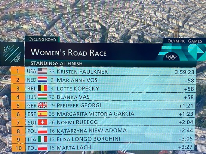 📱Le TOP 10. Les dames ont donné un spectacle grandiose dans les rues de Paris (et périphérie). La course sur route a tenu toutes ses promesses. Nous retiendrons deux éléments déjà cités : 1. Le découpage télévisuel et l'axe touristique donnés à l'épreuve étaient compliqués. 2. Il a fallu laisser des championnes à la maison … Lire la suite 🥉 POUR KOPECKY. « J.O PARIS » – ROUTE. 04/08. ▶2024