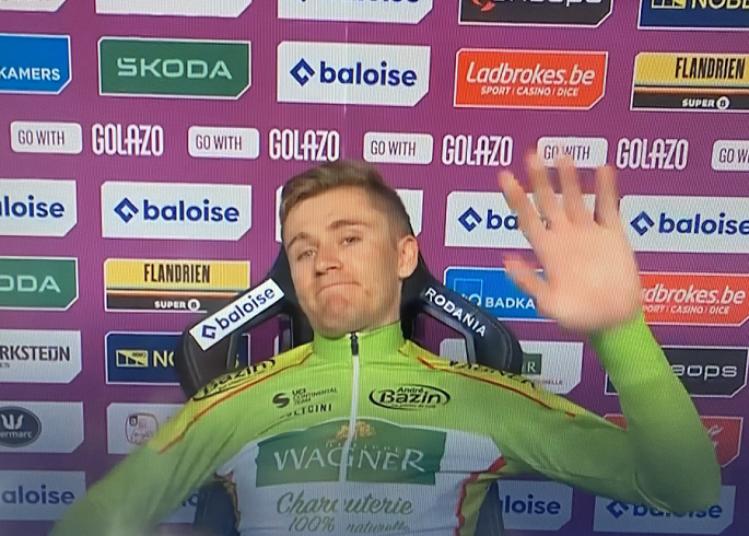 📱Print Screen de la tv "SPORZA". Quentin BEZZA (26 ans) "PHILIPPE WAGNER-BAZIN" CONTI quitte son fauteuil de F1 à contrecœur. ET. CLM. Le "TOUR DE BELGIQUE" n'a pas fait de cyclotourisme lors des deux premières étapes. Avec un tel plateau, il parait évident que plusieurs teams sont présents pour remporter le général et des étapes. … Lire la suite APRES DEUX JOURS DE « BALOISE BELGIUM TOUR ». 12-13/06. + RESULTATS. ▶2024