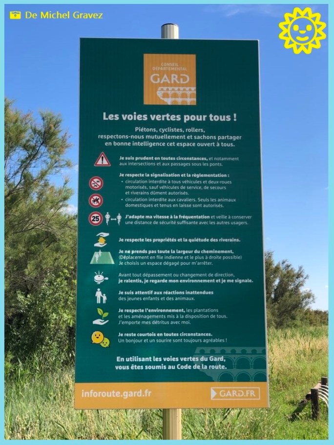 📷De MichelG 2024 (Sud de la France). Panneau qui pourrait être d'application en Belgique (Ravel). AVosVélos!!! Bientôt les vacances pour tous !!! Utopique ...