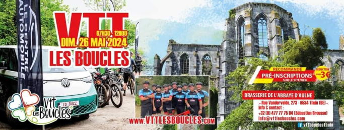 Affiche organisateur. "LE VTT LES BOUCLES" est connu. Vous avez toutes les modalités sur l'affiche. THUIN une bonne occasion pour visiter ou revisiter la Thudinie.