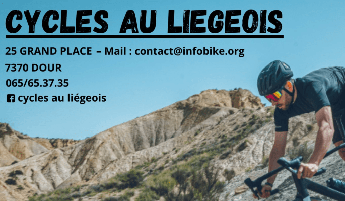 📱De RonaldC qui vous informe. "LES CYCLES AU LIEGEOIS", situés Grand Place à DOUR, organisent un "GRAVEL SOCIAL RIDE" en date du 18 février 2024. Distance : 55 km (GPX disponible et envoyé par mail au besoin - voyez la page "FB") pour le GRAVEL. Départ : 09h00 devant le magasin. Dès 08h15, il y … Lire la suite GRAVEL ET ROUTE A DOUR. 18/02 ▶2024