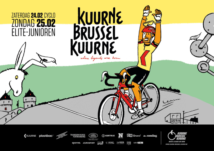 Affiche organisateur. En seconde journée de l'ouverture belge, "KUURNE-BRUSSEL-KUURNE" - Pro Série, donnera certainement un beau vainqueur. BENOOT ne semble pas encore en condition et les prétendants sont nombreux. VAN AERT ? "LCOW" pourrait être en bord de route. Modalités pratiques. ELITES M 196,4 km Présentation des équipes au préalable. Départ : COURTRAI Place à … Lire la suite « KUURNE-BRUSSEL-KUURNE ». 25/02. INFOS. + Résultats ▶2024