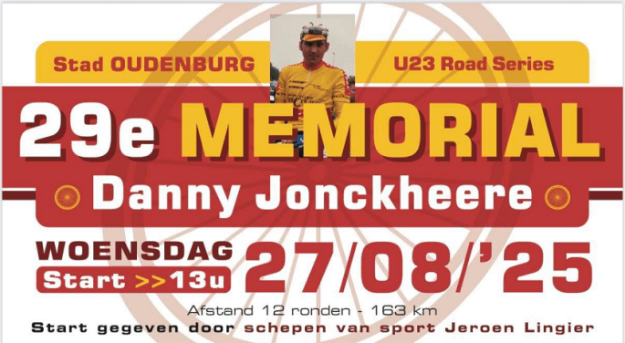 Affiche organisateur. Il est bon de rappeler que cette épreuve "MEMORIAL DANNY JONCKHEERE" est dédiée à cet ancien espoir de l'équipe "PALMANS-BOGHEMANS" décédé dans un accident alors qu'il n'avait que 22 ans (1996). Cette compétition comporte de grands noms dans son palmarès : CAPPELLE L, VAN TOMME, WILLEMS T, DE PESTEL S, ... . OUDENBURG, … Lire la suite « MEMORIAL DANNY JONCKHEERE ». « U23 ROAD SERIES ». OUDENBURG. INFOS + RESULTATS. 27/08.💠2025