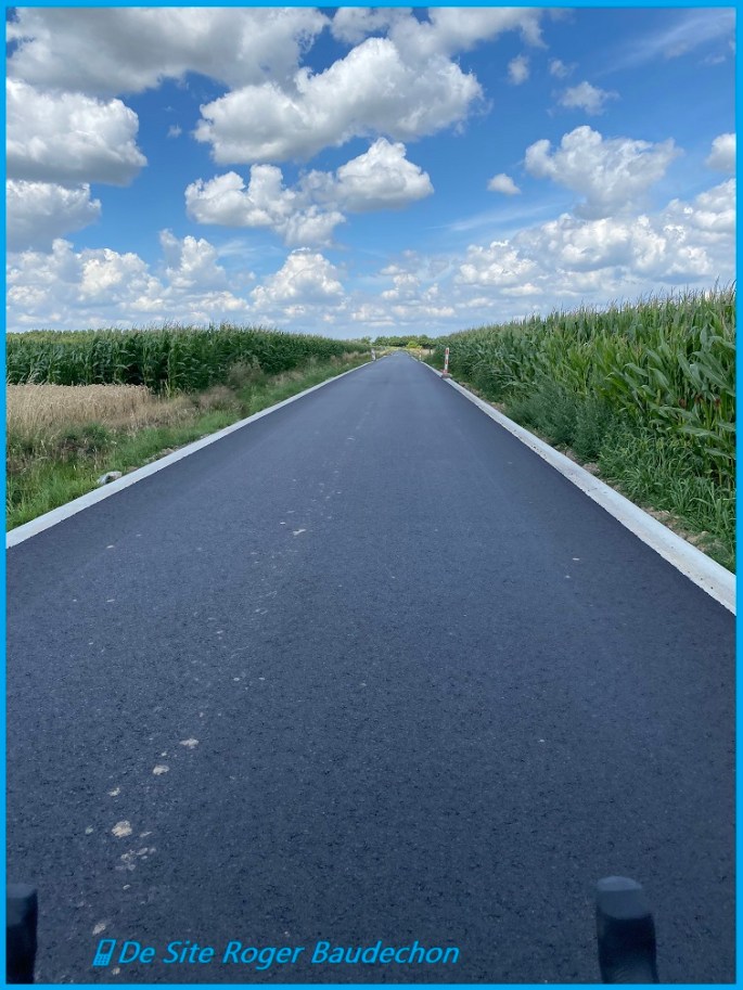 Rue du Bois à Bassilly. Elle joint Bois-de-Lessines à Bassilly via le "Point d'arrêt" - ancienne "gare" du village - Chemin de fer. Passe sous l'A8. La voirie est ouverte à la circulation. Un nouveau revêtement de plus. Top !!! BASSILLY. 📱De Site Roger Baudechon 2025. Lors d'une boucle à 🚴♀️ - 75 km (vendredi).
